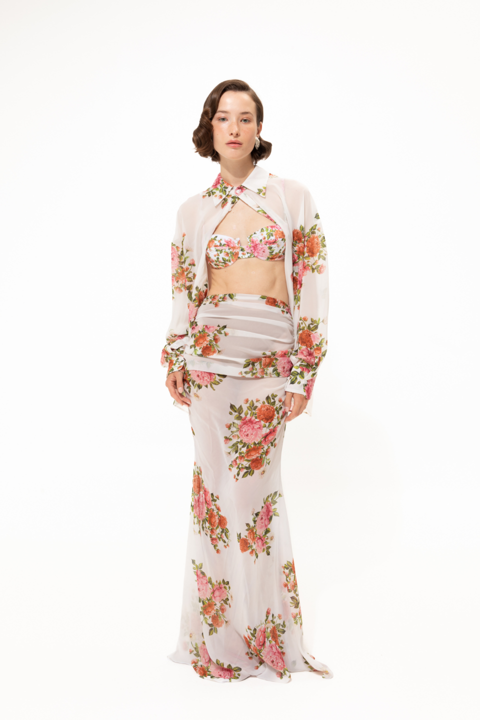 A new addition to our skirt collection this season, is this piece in a pink floral print. The Pink Passion Maxi skirt features an elegant, figure-hugging pattern and can be worn with its matching one size shirt.